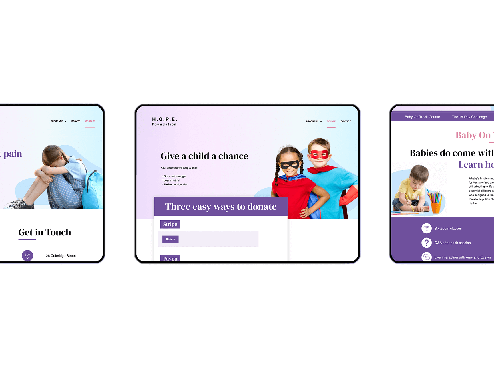 Using soft colors and fun imagery, as well as animated entrances, we created a friendly feel website which informs parents of the various programs they can benefit from.